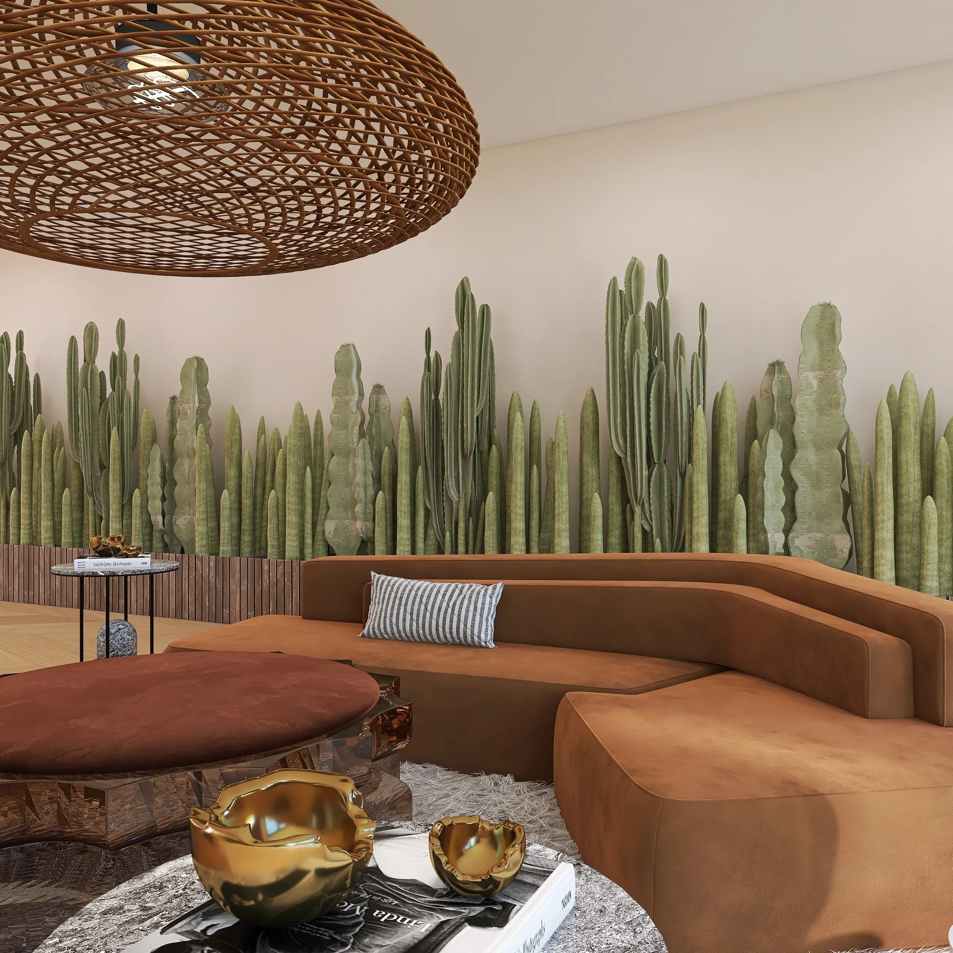 Decor that fuses natural textures with refined metallic details