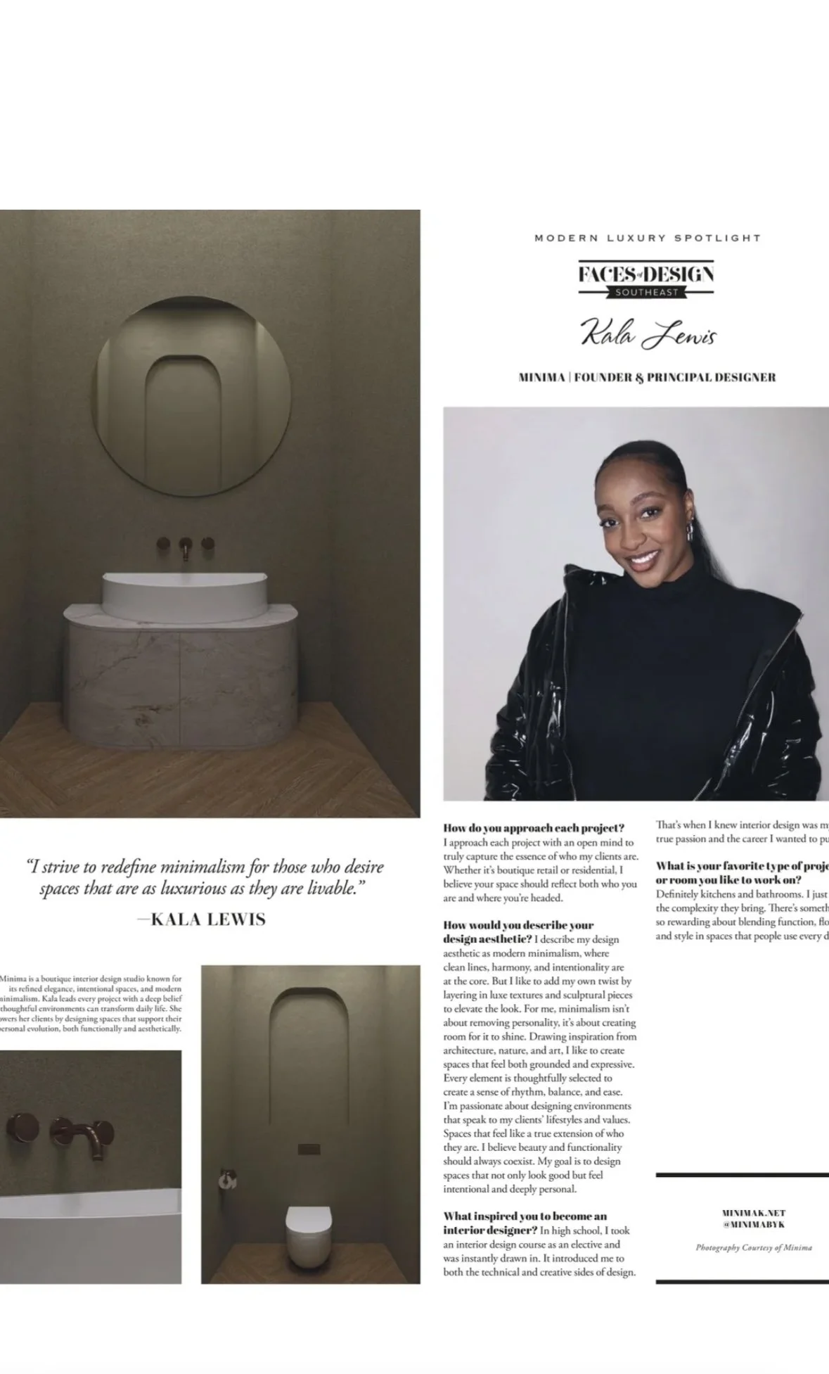 A curated look at where Kala Lewis and Minima have been recognized for excellence in luxury interior design. From national publications to local spotlights, explore the features that celebrate our vision, values, and creative impact.